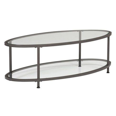 A bottom shelf provides extra storage space for an uncluttered look. Camber 48 oval metal and glass coffee table, pewter, clear glass houzz. A combination of clear glass and steel gives the studio designs home camber 48 in. Modern design coffee table with metal frame printjewels 4.5 out of 5 stars (67) sale. With a durable tempered glass top that pairs seamlessly with a variety of different decor styles, you can use this oval glass and metal coffee table in front of any couch or set of.