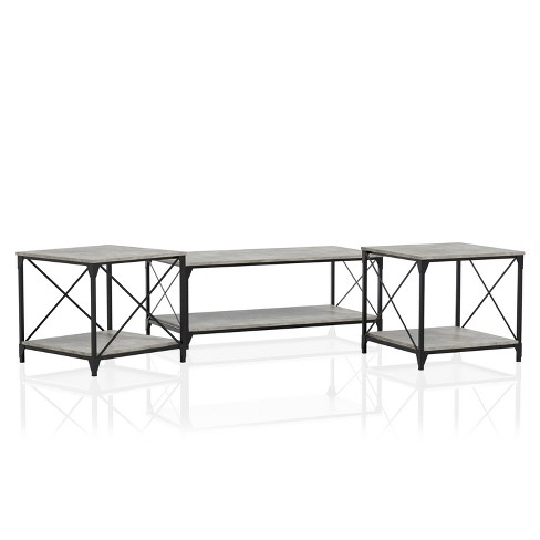 Gray wash/black medium rectangle glass coffee table with open shelf. Quick shop add to wish list add to compare. 99 list list price $299.99 $ 299. 4.7 out of 5 stars with 17 ratings. King's brand 3 piece wood x style casual coffee table & 2 end tables occasional set, cherry finish.